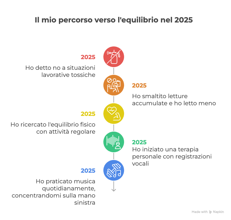 Così nel 2024 mi sono detto una cosa molto chiara: il 2025 deve essere l’anno dell’equilibrio. Un anno in cui sottrarre, non aggiungere. Fare meno, ma farlo meglio.